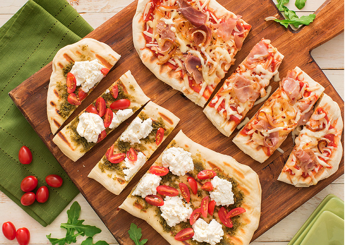 Prep your palates with pizza! These flavorful flatbreads are easy to cut into bite-sized slices that will go fast. Try our recipes or make your own—premade flatbreads are a wonderful starting point for lots of flavor combinations.