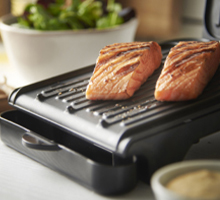 Take your grilling and mealtime experience to the next level with the George Foreman® 2-Serving Classic Plate Electric Indoor Grill and Panini Press. Tight on space in your kitchen? It’s space saving design uses up to 34% less storage space*, and when it comes to grilling, it seals in flavors with up to 50% better searing*** – locking in great taste and succulence. It’s 8x more durable** Advanced George Tough™ non-stick coating helps to protect the grill plates against scratches and heat – perfect for prolonging the life of the grill and for fast, easy clean up. For grilled food made easy, cook and clean with confidence thanks to your George Foreman® grill.