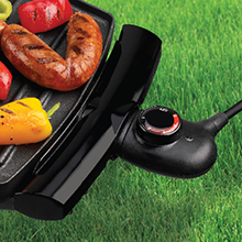 Hope you’re hungry! (Or have lots of friends!) The George Foreman® Indoor/Outdoor Grill has room for over 12 servings of delicious meats, veggies, kabobs, desserts, and more! Plus, it’s right there in the name and it’s totally true – you can use this grill just as easily outdoors as you can indoors. It’s made possible by the removable grill stand that’s sturdy on the patio and can be removed for countertop grilling. Add in the durable nonstick coating and the patented fat-removing slope, and you’ve got the power to create large, tasty portions of everyone’s favorites with simple cleanup, to boot. What – and where – will you grill?